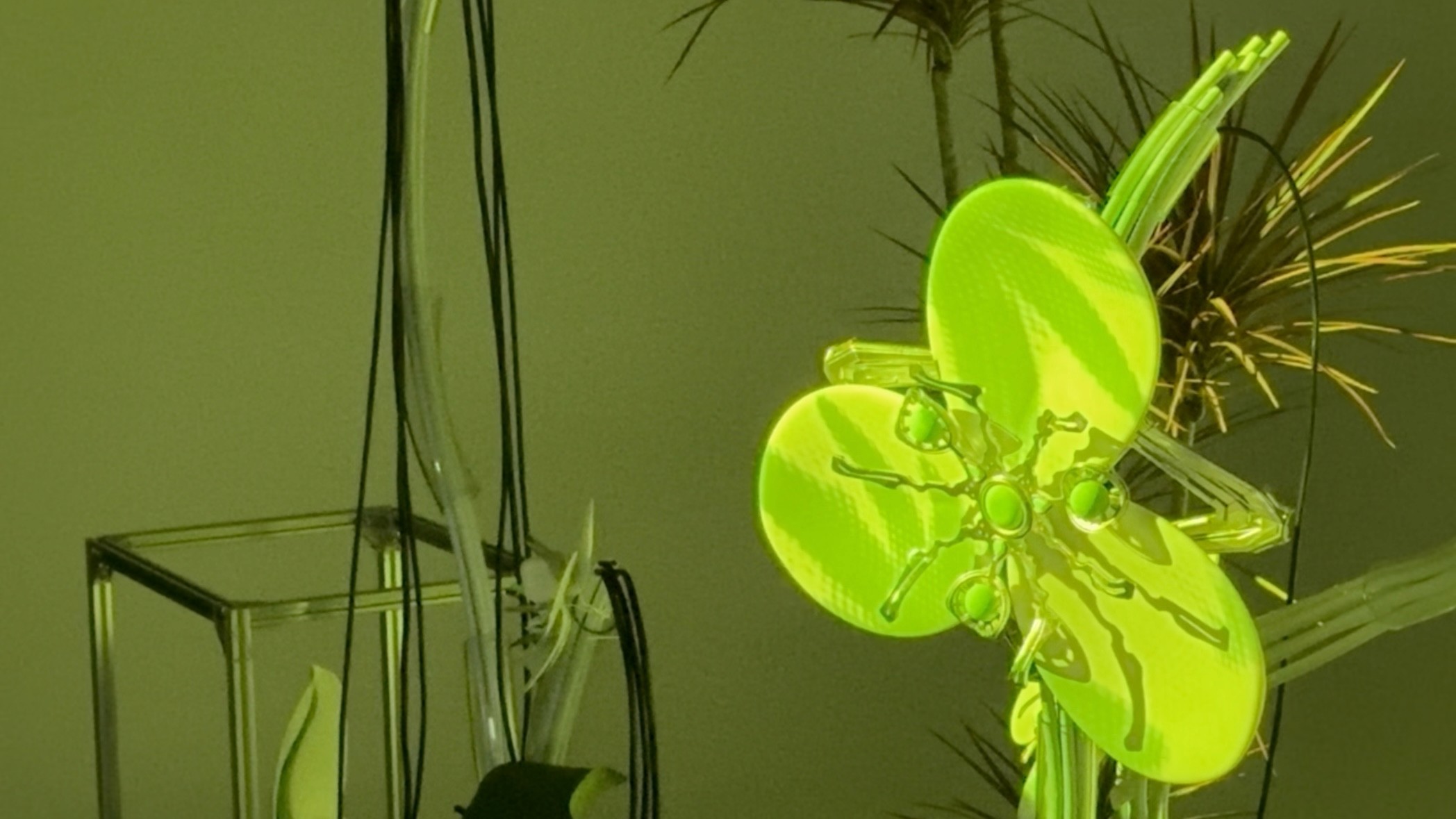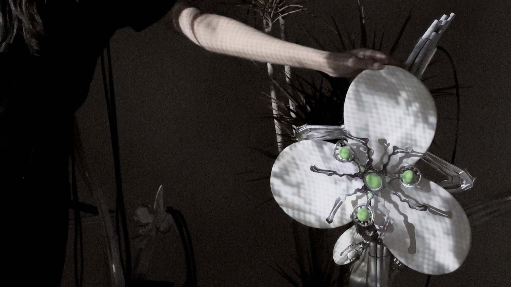 "MetaFlora: Nature’s Response" is an immersive art installation confronting humanity's ecological indifference. In this dystopian realm, e-waste morphs plants into metallic entities, echoing our environmental neglect. The interactive projection reacting to human presence, symbolizing our symbiotic impact on nature. The projection allows audiences think about how we affect the environment. It asks us to take responsibility for what we do by showing how our actions can harm the delicate balance of nature.